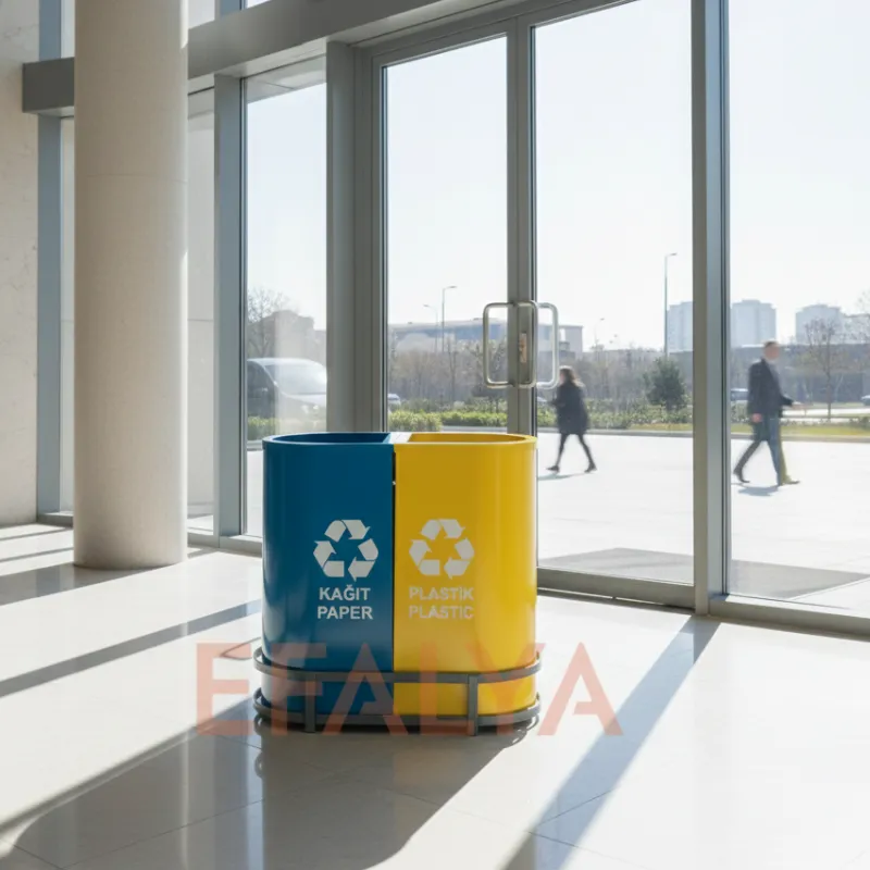 Ofis koridorları, fotokopi odaları veya otel katları gibi alanın kısıtlı olduğu, ancak atık ayrıştırma ihtiyacının yoğun olduğu mekanlar için özel çözümler gerekir. 2li Boyalı Atık Seti modelimiz, bu ihtiyaca yönelik olarak tasarlanmış, dayanıklılığı, kompaktlığı ve üstün alan verimliliğini bir araya getiren ideal bir çözümdür.