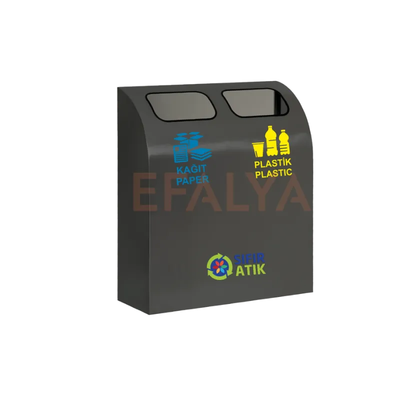 Görselde yer alan bu ikili sıfır atık kutusu, sadece 60 cm’lik kompakt genişliği ve 26 cm’lik ultra ince (slim) derinliği sayesinde, en dar koridorlarda, ofis köşelerinde veya bekleme alanlarında bile yer kaplamaz. Modern antrasit gri rengi ve elektrostatik boyalı metal gövdesi, profesyonel bir görünüm sunarak mekanınızın dekorasyonuyla bütünleşir.