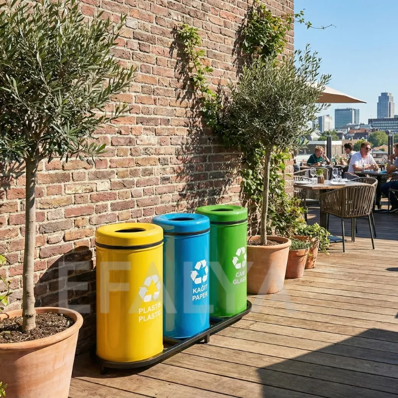Kesinlikle. Yönetmelik gereği atıkların kaynağında en az 3 ana grupta (Kağıt-Plastik-Evsel/Metal) ayrıştırılması gerekir. Bu set, 3 farklı ünitesi, belirgin renk kodları ve etiketleriyle tüm yasal şartları eksiksiz karşılar. Kurumunuzun sıfır atık hedeflerine şık bir çözüm sunar.