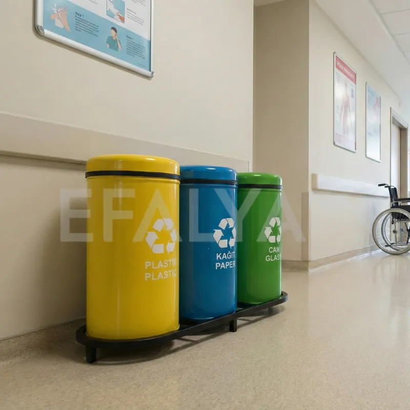 Profesyonel mekanlarda atık yönetimi, çevresel sorumluluk ve yasal uyumluluğun yanı sıra, operasyonel güvenliği de kapsamak zorundadır. 3lü atık kutusu modelimiz, bu üç temel ihtiyacı tek bir üründe birleştiren üstün nitelikli bir çözümdür. Dayanıklı elektrostatik boyalı metal gövdesi, 3’lü ayrıştırma (Plastik, Kağıt, Cam) fonksiyonu ve en önemlisi yanmaz kapak özelliği ile 1003B, ofis, otel, hastane ve AVM gibi yoğun sirkülasyonlu alanlarda maksimum güvenlik ve verimlilik sağlar.