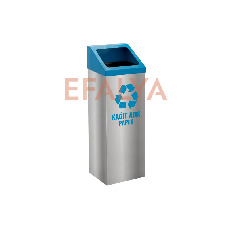 Görselde de göreceğiniz gibi, bu modelin sade ve şık paslanmaz çelik gövdesi üzerine uygulanan canlı mavi renkli üst kapak ve net KAĞIT ATIK / PAPER piktogramı, kullanıcıların tereddüt etmeden doğru atığı atmasını sağlar. 42 litrelik geniş hacmi ile sık boşaltma gereksinimini azaltır, böylece temizlik ve operasyonel verimliliği artırır. Bu atık kutusu, sadece bir toplama aracı değil, aynı zamanda kurumunuzun çevreye olan saygısını yansıtan şık bir mobilyadır.