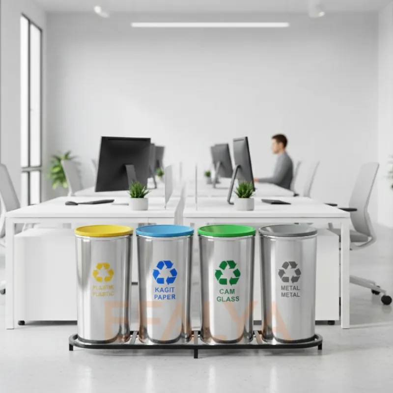 Modern işletmeler için sürdürülebilirlik sadece bir trend değil, kurumsal sorumluluğun temel taşıdır. Ofisinizde, otelinizde, hastanenizde veya AVM’nizde hem mevzuata uygun hem de mekanın estetiğini yükselten bir atık yönetimi çözümü arıyorsanız, 1006A kodlu 4’lü atık toplama ünitesi setimiz tam ihtiyacınız olan profesyonel çözümdür.