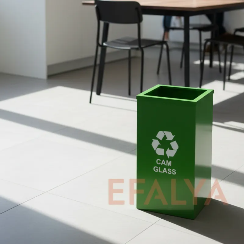 • Tek Nokta Çözümü: Sadece bir otomatın yanına görseldeki gibi bir “Cam Atık” kutusu mu lazım? 1021D, bu ihtiyacı tek başına karşılar.