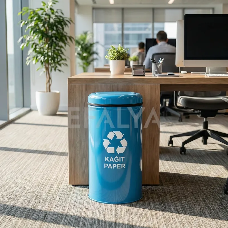 Profesyonel iş ortamlarında, sürdürülebilirlik hedeflerine ulaşmanın ve Sıfır Atık Yönetmeliği’ne uymanın en pratik yolu, atıkları kaynağında verimli bir şekilde ayrıştırmaktır. Kağıt atık kutusu modelimiz, özellikle ofisler, bekleme salonları ve eğitim kurumları gibi kağıt ve plastik atığın yoğun olduğu mekanlar için tasarlanmış, kompakt ve estetik bir çözümdür. 64 cm’lik stand genişliği ile dar koridorlarda veya çalışma istasyonlarının yanında bile minimum yer kaplayarak maksimum verimlilik sağlar.