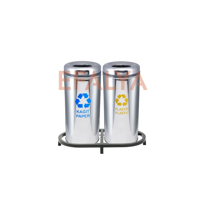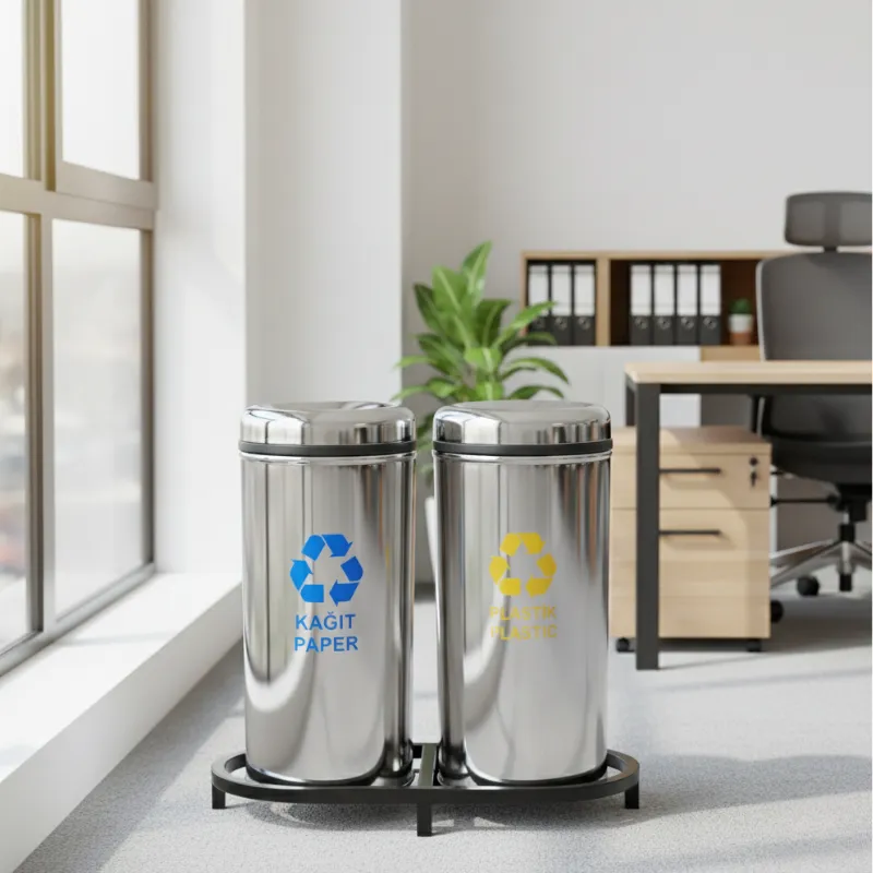 İkili setler genellikle en temel ayrıştırma ihtiyacını karşılar. Çoğunlukla “Geri Dönüşüm (Mavi) – Evsel Atık (Siyah)” veya “Kağıt – Plastik” olarak tercih edilir. Ancak imalatçı olduğumuz için kurumunuzun ihtiyacına göre kapak renklerini ve gövde yazılarını istediğiniz atık türüne göre (Örn: Cam – Metal) özelleştirebiliriz.