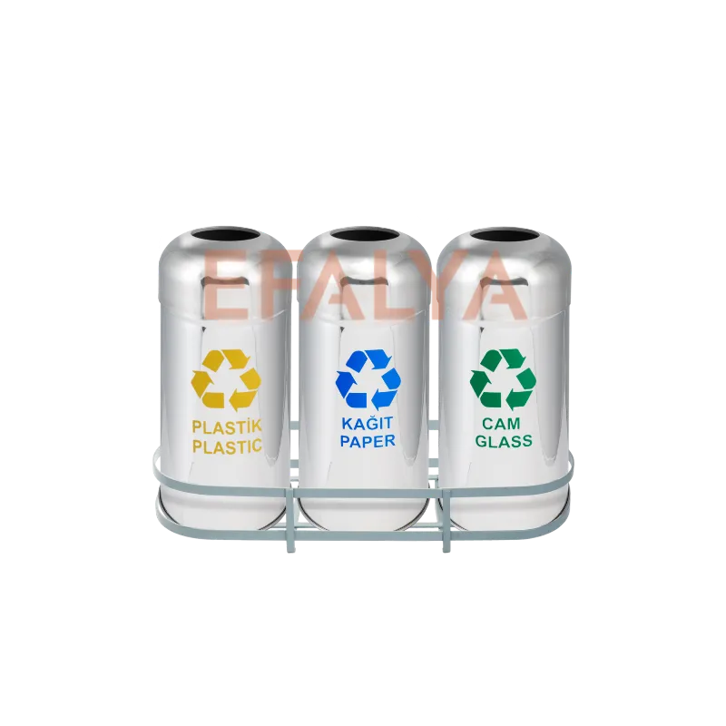 Yüksek insan sirkülasyonuna sahip AVM’ler, üniversite kampüsleri, hastaneler ve A sınıfı iş merkezleri için atık yönetimi, standart çözümlerin ötesinde bir kapasite, dayanıklılık ve estetik prestij gerektirir. Paslanmaz Çelik 3lü Sıfır Atık Ünitesi modelimiz, bu ağır hizmet kurumsal ihtiyaca cevap vermek için özel olarak tasarlanmıştır. 78 cm yüksekliği ve 36 cm çapı ile yüksek kapasiteli bir çözüm sunan bu 3’lü atık kutuları seti, atıkları (Plastik, Kağıt, Cam) kaynağında etkili bir şekilde ayrıştırır.