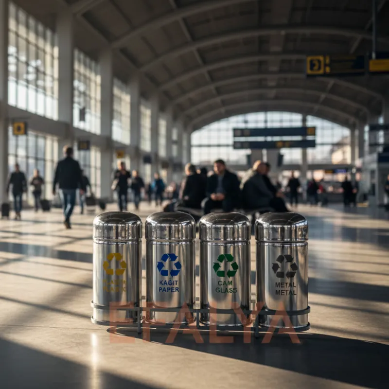 Yüksek insan sirkülasyonuna sahip AVM’ler, üniversite kampüsleri, hastaneler ve A sınıfı iş merkezleri için atık yönetimi, standart çözümlerin ötesinde bir kapasite, dayanıklılık ve estetik prestij gerektirir. Paslanmaz Çelik 4lü Sıfır Atık Ünitesi modelimiz, bu ağır hizmet kurumsal ihtiyaca cevap vermek için özel olarak tasarlanmıştır. 78 cm yüksekliği ve 36 cm çapı ile yüksek kapasiteli bir çözüm sunan bu 4’lükutu seti, atıkları (Plastik, Kağıt, Cam, Metal) kaynağında etkili bir şekilde ayrıştırır.