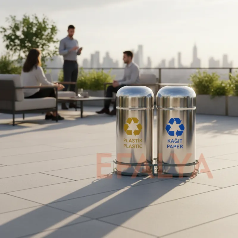 - Özel Atık Kombinasyonları: 1012C standart olarak 2’li (Plastik/Kağıt) sunulsa da, projenizin ihtiyacına göre bu seti “Cam/Metal”, “Evsel Atık/Organik” veya “Maske/Eldiven” gibi farklı bölmelerle yeniden yapılandırabiliriz.