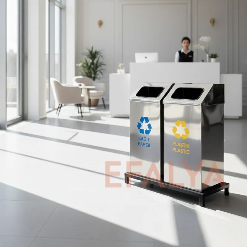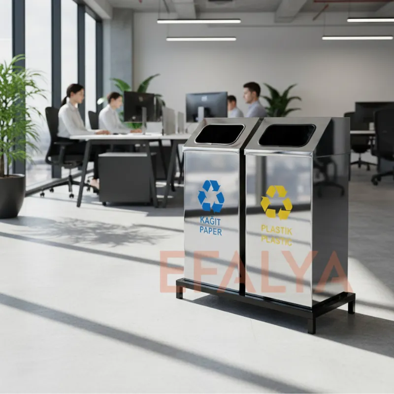 - Ofis Ortamları: Fotokopi odalarının yanına, yazıcı istasyonlarına veya kat mutfaklarına kurularak, en çok üretilen iki atık türünü (Kağıt ve Plastik) kaynağında, yüksek prestijle toplar.