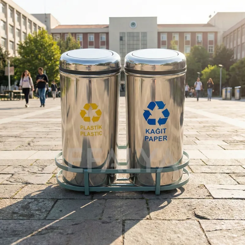 - Özel Atık Kombinasyonları: 1002C standart olarak 2’li (Plastik/Kağıt) sunulsa da, projenizin ihtiyacına göre bu seti “Cam/Metal”, “Evsel/Organik” veya “Maske/Eldiven” gibi farklı bölmelerle yeniden yapılandırabiliriz.
