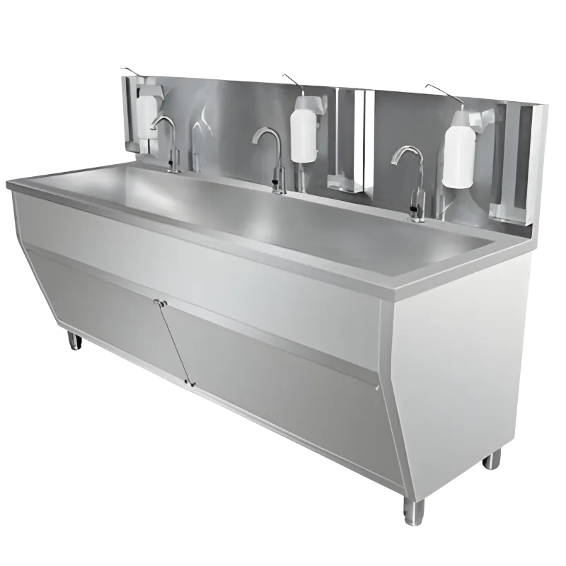 Veteriner hekimlikte “scrub-in” süreci, bir operasyonun en kritik aşamalarından biridir. Hekimin ellerini ve ön kollarını cerrahiye hazırlarken hiçbir yere temas etmeden temizlemesi gerekir. Veteriner el yıkama evyesi, tamamen eller serbest kontrol mekanizmasıyla donatılarak, çapraz kontaminasyon riskini ortadan kaldırmak için özel olarak tasarlanmıştır. AISI 304 kalite paslanmaz çelikten üretilen bu üniteler, kliniğinizin ameliyathane girişlerinde profesyonel ve steril bir istasyon oluşturur.